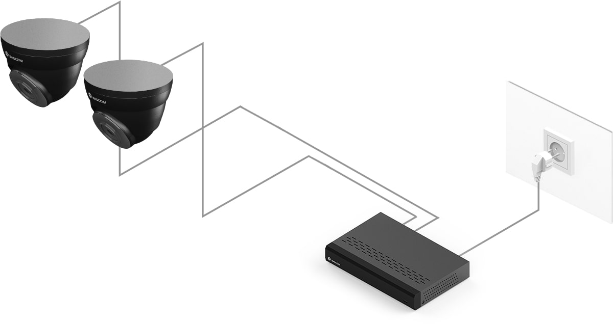 Ontdek het gemak van Power over Ethernet (PoE), een innovatieve technologie die het mogelijk maakt om elke camera met slechts één kabel aan te sluiten. Over deze kabel verstuurt de camera zijn beelden naar de recorder, terwijl de recorder de camera van stroom voorziet. Een stroompunt bij de camera is niet nodig.