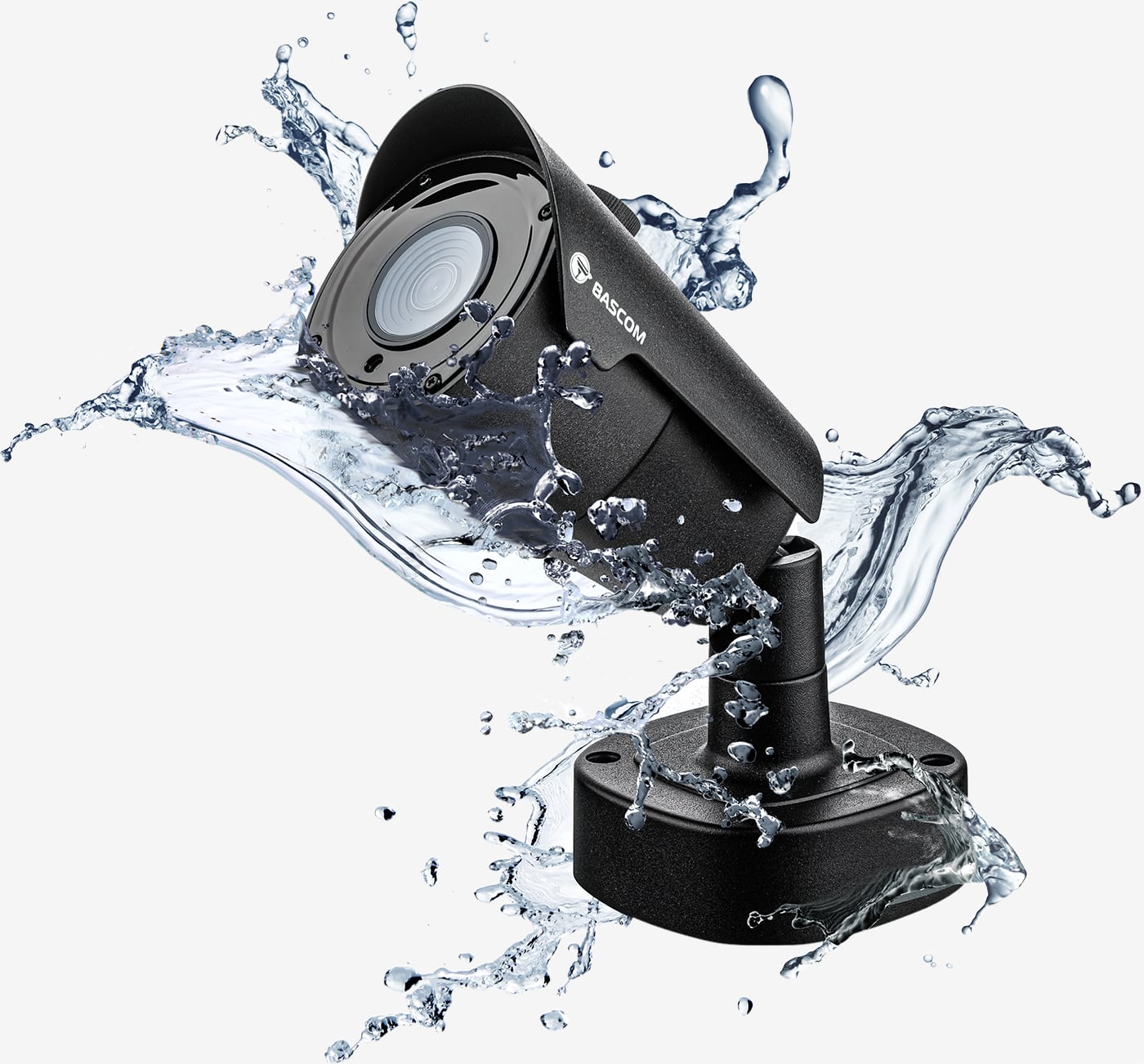 Camera’s van Bascom zijn waterbestendig (bestendigheidsnorm IP67) en kunnen tegen alle weersomstandigheden. Dit maakt ze uitermate geschikt voor zowel binnen- als buitengebruik. Bovendien is de robuuste behuizing vervaardigd uit gehard aluminium en afgewerkt met een hoogwaardige poedercoating. Dit beschermt de camera’s tegen corrosie en slijtage, waardoor ze een duurzame keuze zijn met een uitzonderlijk lange levensduur.