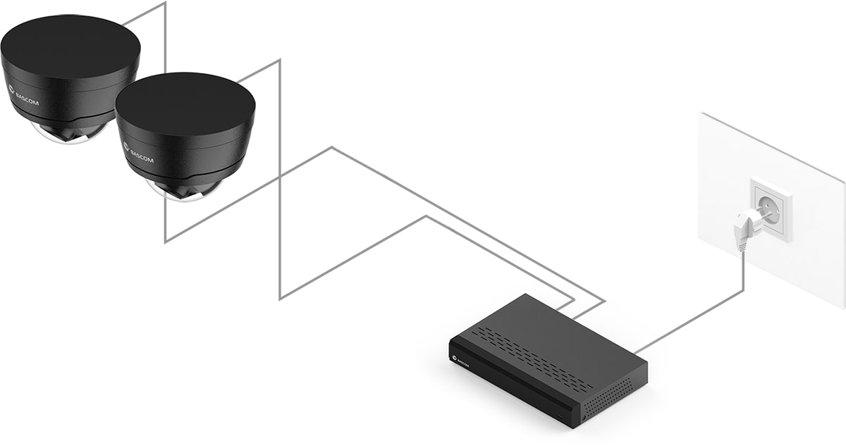 Ontdek het gemak van Power over Ethernet (PoE), een innovatieve technologie die het mogelijk maakt om elke camera met slechts één kabel aan te sluiten. Over deze kabel verstuurt de camera zijn beelden naar de recorder, terwijl de recorder de camera van stroom voorziet. Een stroompunt bij de camera is niet nodig.