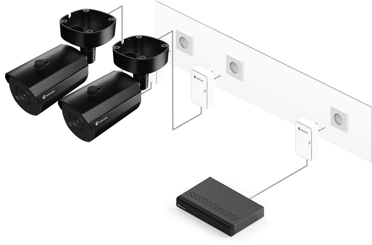 Vergeet haperende wifi en het trekken van tientallen meters kabel: de oplossing zit al in uw muren. Dit camerasysteem met Bascom® POWER-technologie verstuurt zijn beelden via uw bestaande stroomdraden. Sluit de camera's aan op een stopcontact en ervaar direct de kwaliteit van een bekabelde verbinding, zonder deze zelf te hoeven aanleggen.