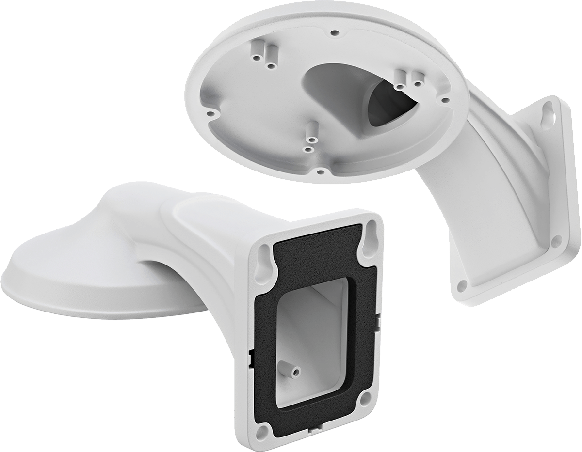 Een dome-camera kan aan het plafond of plat tegen de muur worden gemonteerd en is in beide gevallen goed te richten. Maar soms is het beter als de camera iets van de muur af komt te staan, bijvoorbeeld om langs een regenpijp of ander obstakel heen te kijken. Dan biedt een muurbeugel een elegante oplossing.